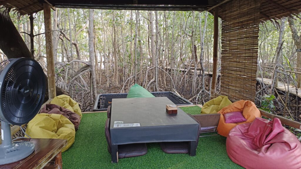 בתוך אתר של בית מלון, נמצאת המסעדה המטורפת הזו. מטורפת משום הלוקיישן. ממש על חוף המנגרובים מצד אחד. מצד שני, סוג של אגם. יושבים בביתנים קטנים ונהנים.
