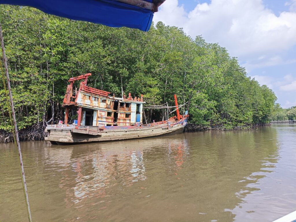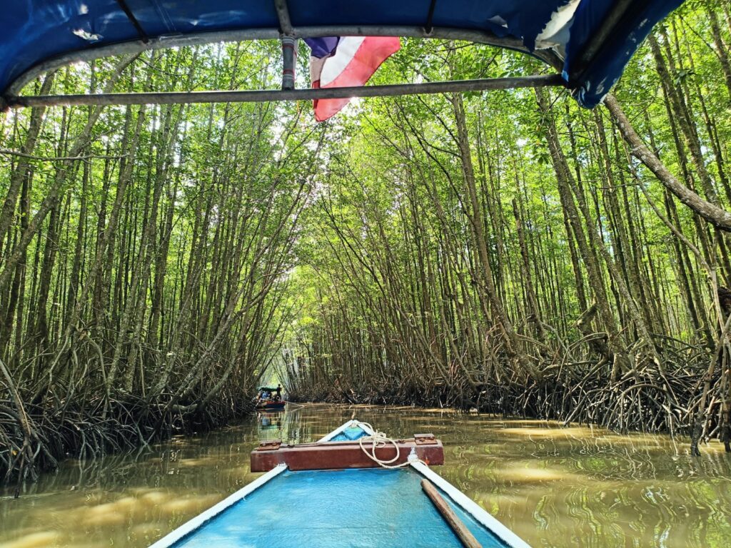 בכפר מציעים לכם לקחת שיט בסירה, בעלות של 600 באט. אז זרמנו עם זה. מעט שקט ובריזה ומנגרובים בכל מקום. סירות דייג והגענו אל הים הפתוח.