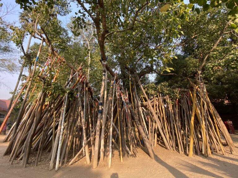 את המקדש השני ברשימתי היה הרבה יותר מאתגר למצוא. נסיעה בין שדות ומטעי דקלים. שבילים לא שבילים. כמעט שויתרנו אך פתאום מצאנו עצמנו מול מקדשון מצחיק Wat Lai Hin.