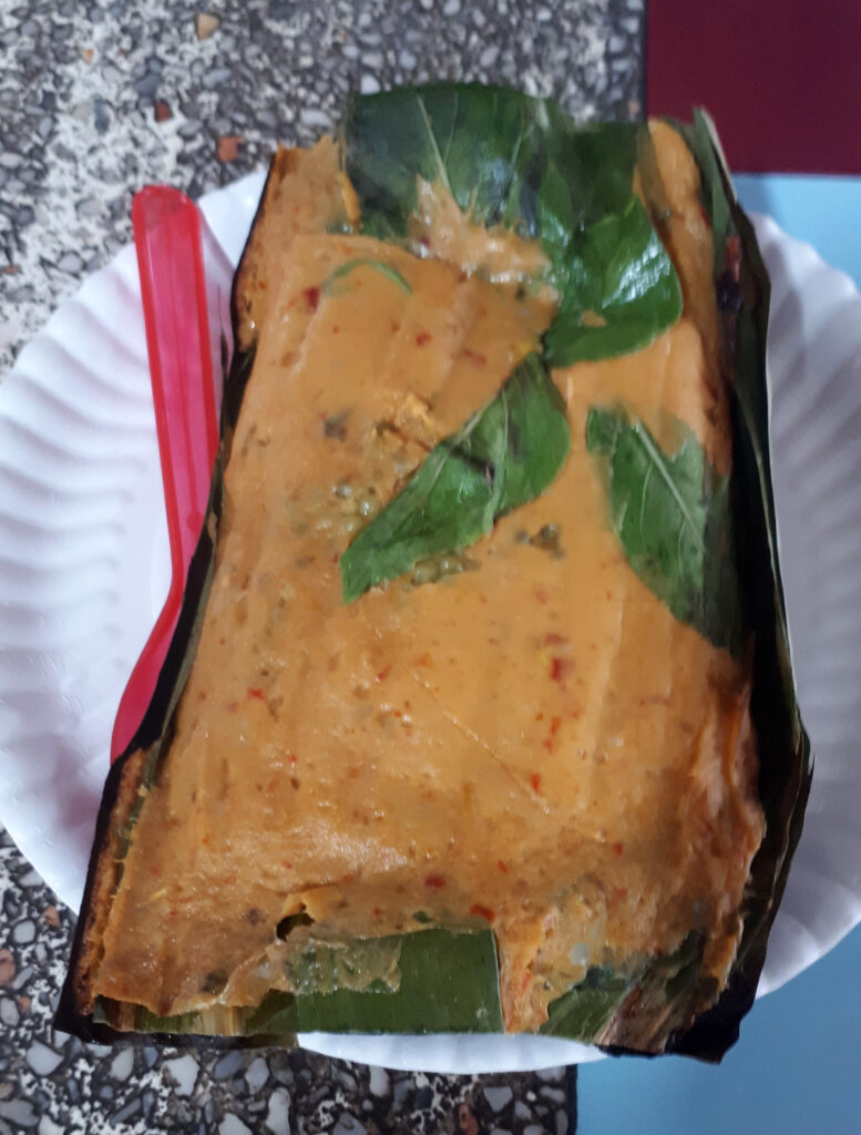 ארוחת ביניים שאינה שיגרתית – בעל שם מוזר: Steamed Egg pimp  curry in a banaana leaf cup.