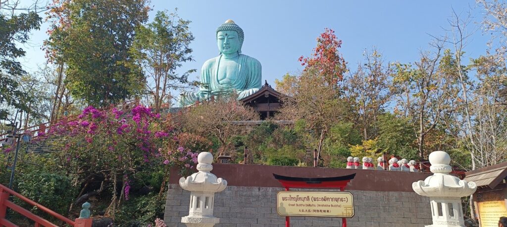 פסל הבודהה ענקי ומרשים. הנוף למרגלותיו מהמם. האווירה כמו ביפן. הפסלים, העיצוב המינימליסטי. חנויות ממכר מזכרות וקמיעות והחתולים…