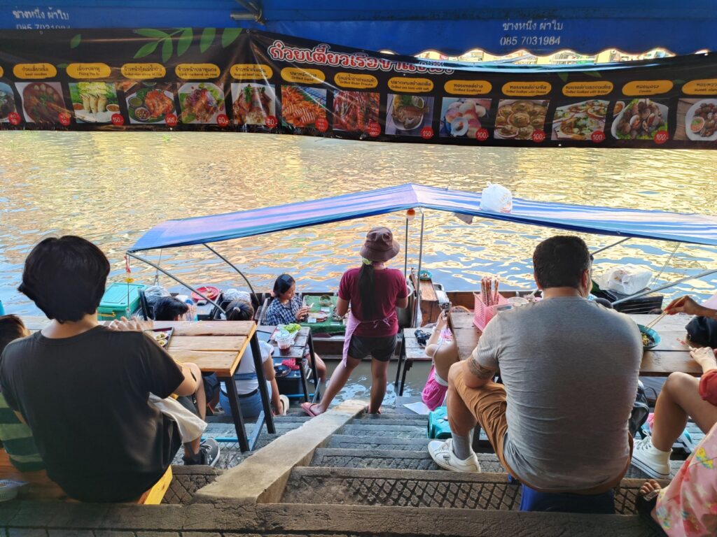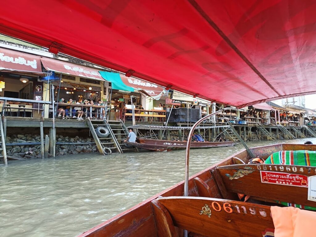 שייט לשוק הצף – הוזמן דרך המלון: לא זול – 1800 באט +מיסים + טיפ, אבל נהנו מאוד. הסירה אספה אותנו מהמזח של המלון בשעות אחר-הצהרים. שטנו בתעלות הסמוכות עד לשוק. חוויה.