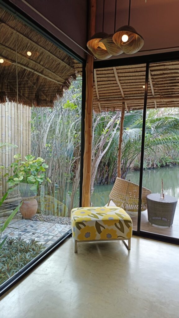 אפשר לשוט בסירות עץ ישנות בין החדרים. לטבול בבריכה הקטנה או סתם להתבטל ליד הנהר.