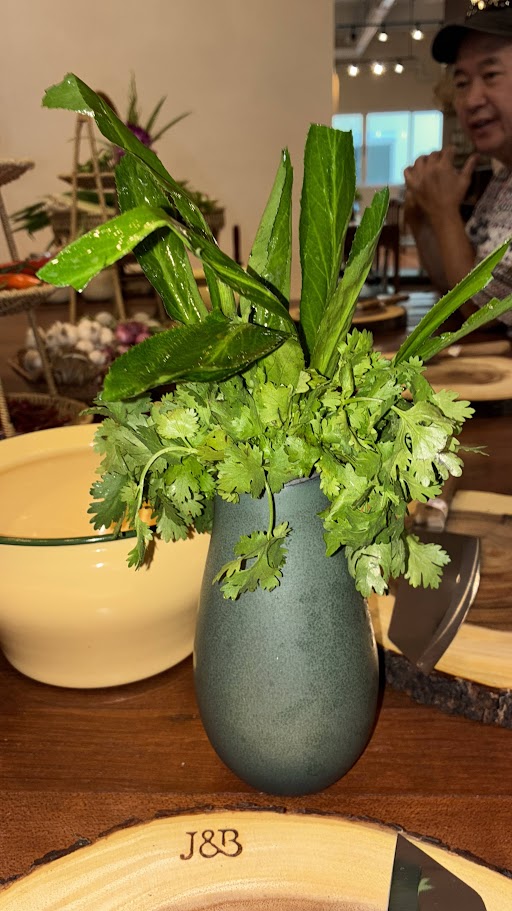 אחרי סיור קצר ומהנה חזרנו לסדנה ותחילה הכרנו את מרכיבי הבסיס של המטבח התאי: צמחי התבלין הארומטים. סוגי החצילים המפתיעים… סוגי צ'ילי מהגדול לקטן והאכזרי שבינהם. שורשים כמו ג'ינגר וגנגל שאי אפשר בלעדיהם. את כולם מיששנו, הרחנו וטעמנו.