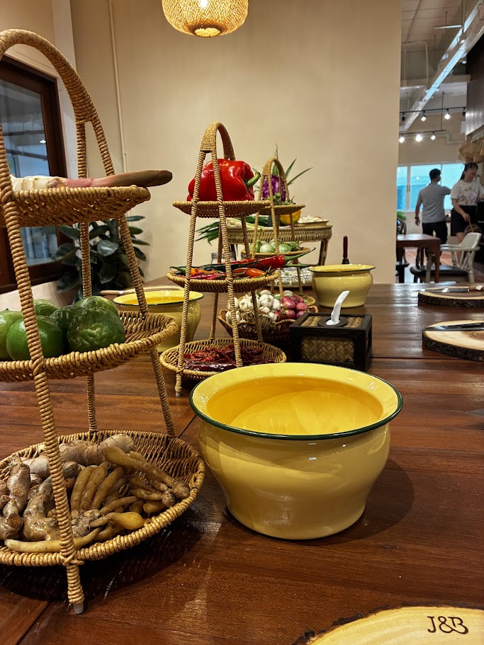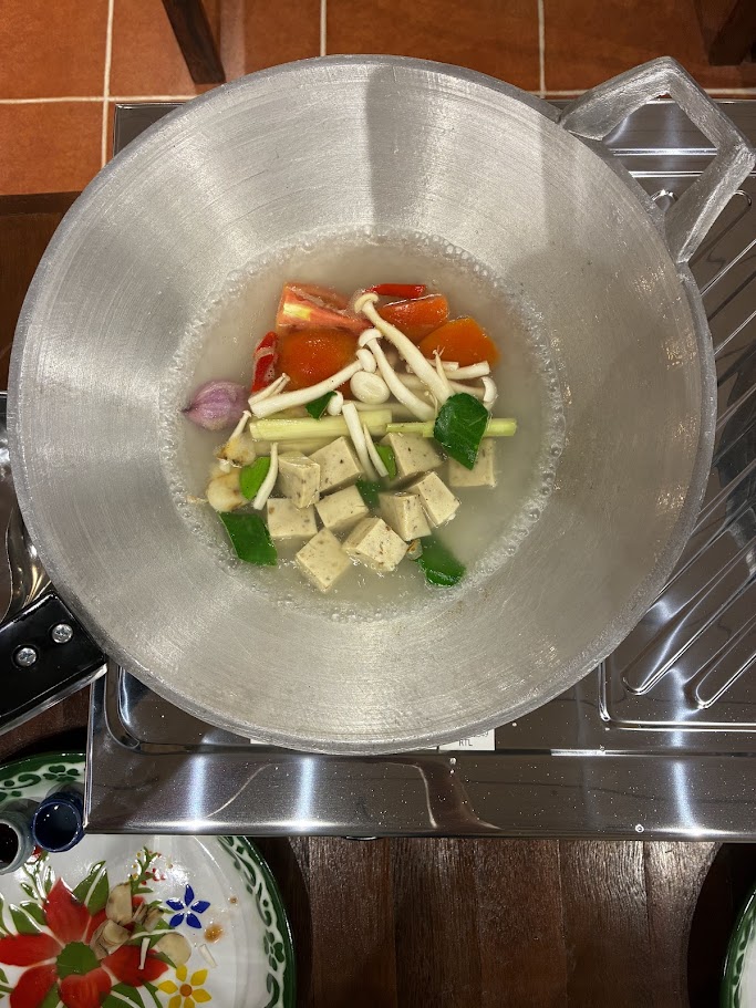 בעוד האורז הדביק מתבשל לאיטו בסלסלת האידוי המסורתית, החלנו להכין את המרכיבים הדרושים להכנת טום-יאם – המרק המפורסם החמצמץ. ומכיוון שאנוכי צמחונית. דאגו לי לערכות צמחוניות נטולות כל שמץ חי.
