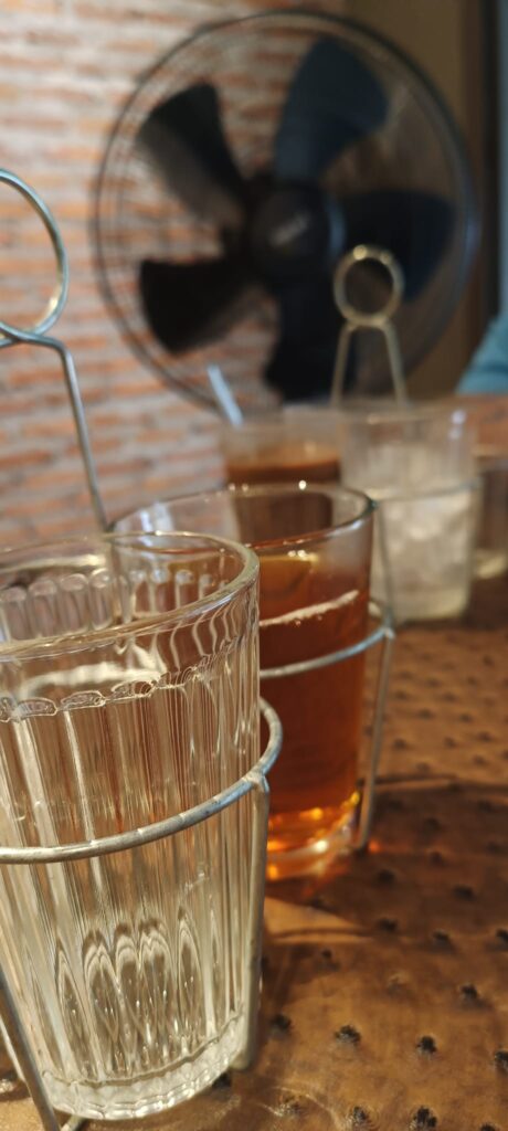 לא שנחסכה מאיתנו חווית הגלים. כי עם כל סירה שעברה לידנו, החדר הצף שלנו, פיזז בעליזות באדוות המים. חששתי למחלת ים… אך לשווא.