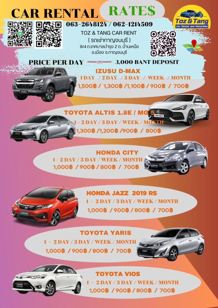 הגענו מבנגקוק ברכבת לקנצ'נבורי, שיחסית נראת כעיירה לא מפותחת כלל ואפילו די אפורה. הזוהר מגיע בעיקר מסביבתה. מיד חיפשנו וגם מצאנו סוכנות מקומית להשכרת רכב, שהומלצה בגוגל.