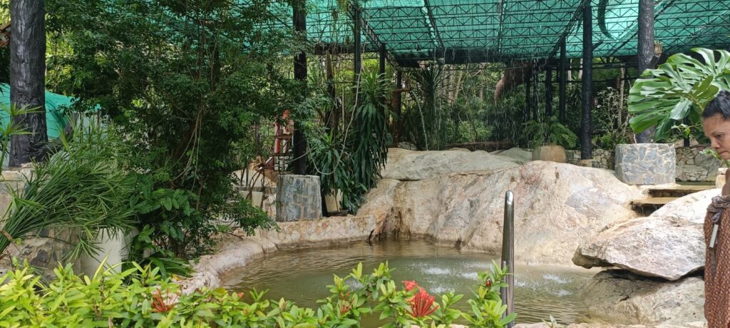13 בריכות וכל בריכה שונה מקודמתה. בטמפרטורה. בהרכב המים. יש בריכות מים מינרלים. בריכות תה סיני. בריכת "פרח אפונת הפרפר כחול". בריכת קפה ובה מתקרצפים בגרגרי קפה לפילניג. בריכת דגים האוכלים עור יבש מכפות הרגליים… ועוד ועוד. המקום מושקע. משולט. עטוף בנוי מהמם .