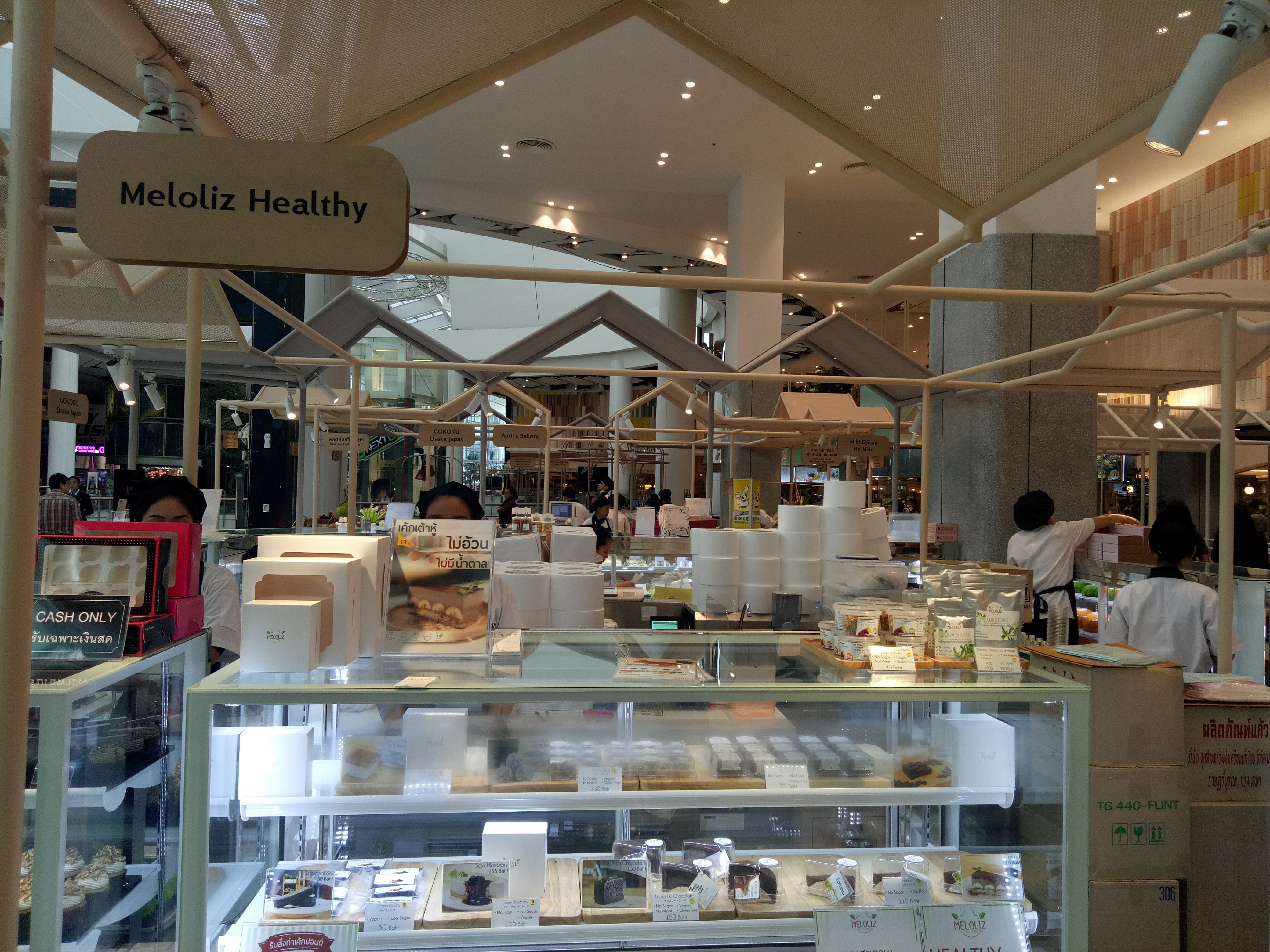 4. לפני מרכז האוכל בסנטרל וורלד. באזור דוכני העוגות. יש דוכן לעוגות טבעונית מצוינות. וגם לעוגות נטולות גלוטן. עוגות בריאות עשויות מחומרים איכותיים כמו אגוזי מקדמיה וכדומה.