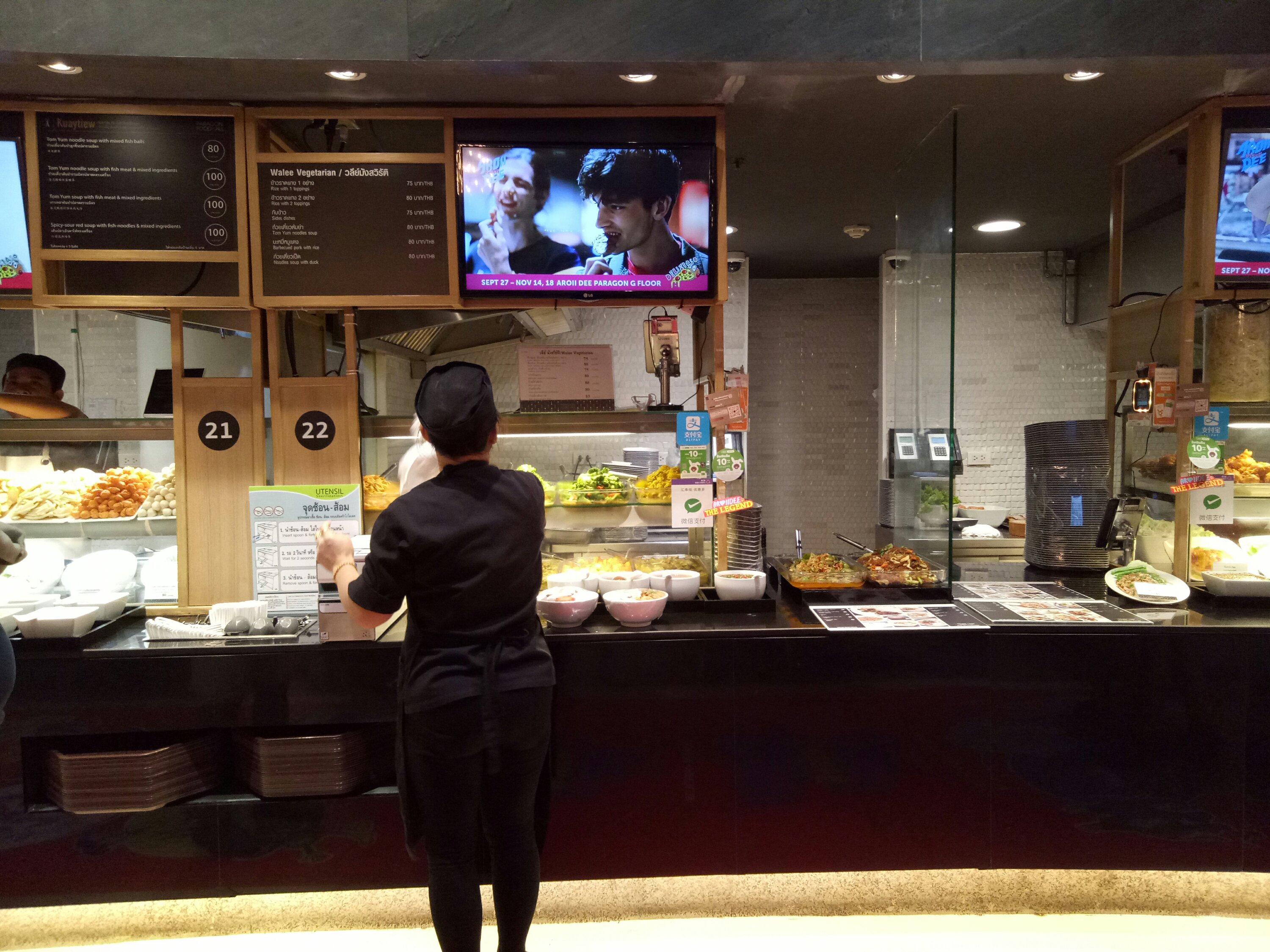 2. בקומה התחתונה של סיאם פרגון, יש קומת אוכל. משלמים לכל כל דוכן בנפרד, במקום.