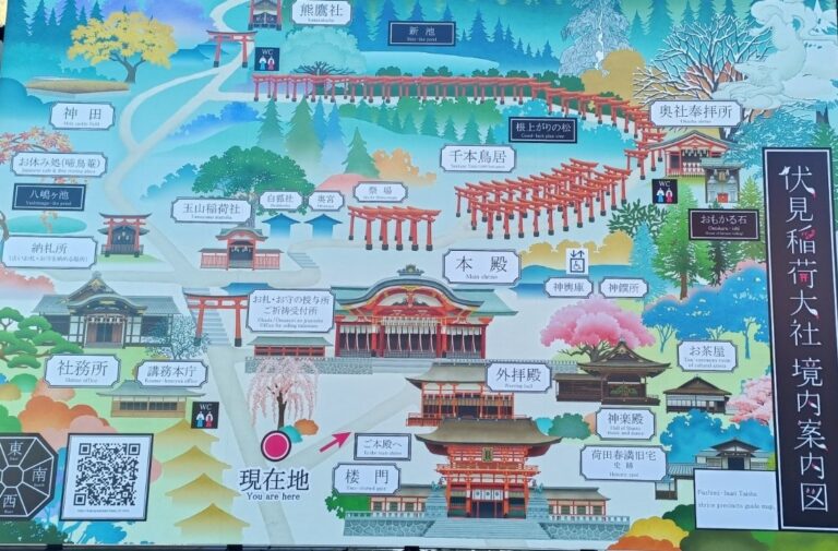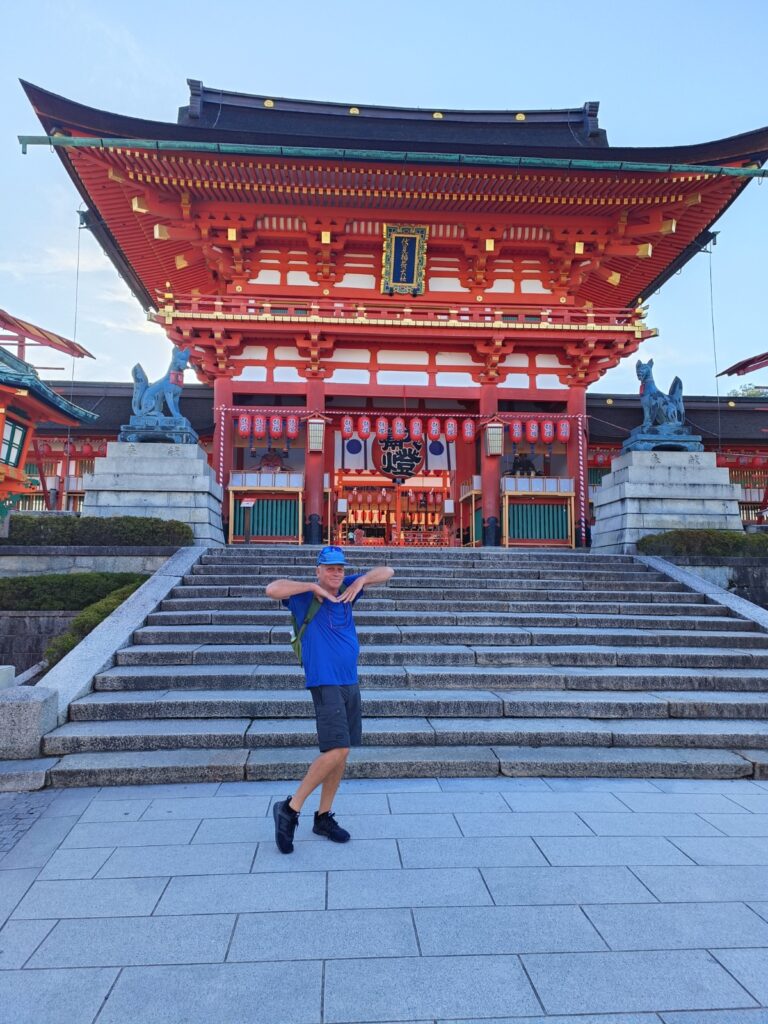 אוטובוס מס' 205 מתחנת קיוטו הוריד אותנו ממש למרגלות מקדש Fushimi Inra אי אפשר לפספס כי לתחנה שער אדום, כדוגמת שערי המקדש. משם יש לטפס על הגבעה. המקדש פתוח 24 שעות ואנחנו הגענו השכם בבקר, רק כדי לגלות המוני תיירים שהשכימו גם הם. הכניסה חופשית ללא עלות.