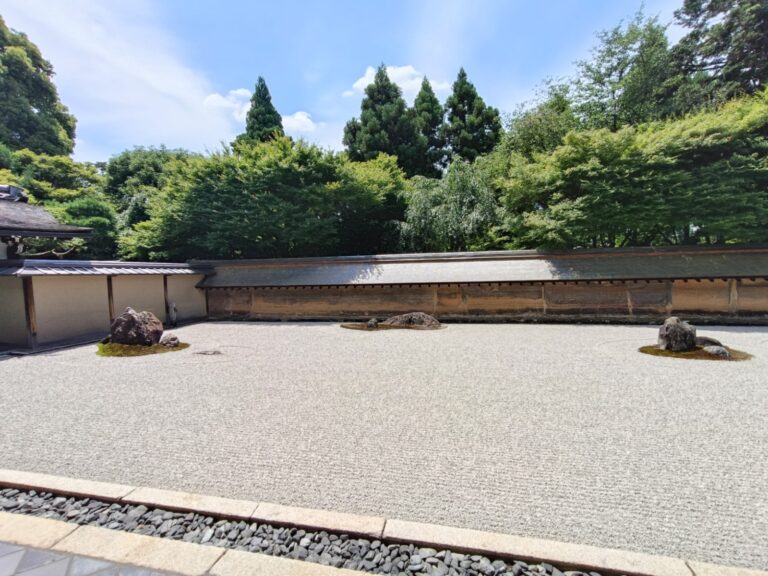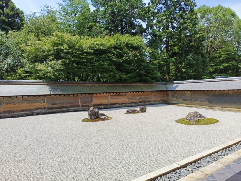 על מנת לצפות בגן הזן המפורסם, עליכם לחלוץ נעלים ולהתיישב בראש פתוח ונפש חפצה על רחבת הדק מול הגן. זהו גן אבנים – לראותו בלבד.