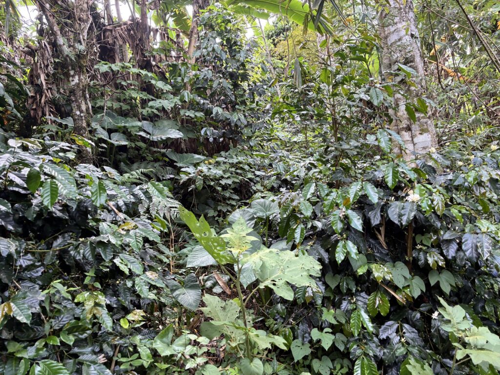 לא הפסקנו להתפעל מהמלון המיוחד הזה. הכל בו מרשים. הלכנו לביקור קצר במפעלי המחזור השונים. (חמדנו את השרפרף מפלסטיק ממחוזר, אבל היה קשה לדמיין אותנו נסחבים עימו עד הארץ). וסיירנו במטעי הקפה המשובח שלהם. ובתמונה: עצי הקפה שלהם גדלים בצילם של עצי הג'ונגל המקומי.