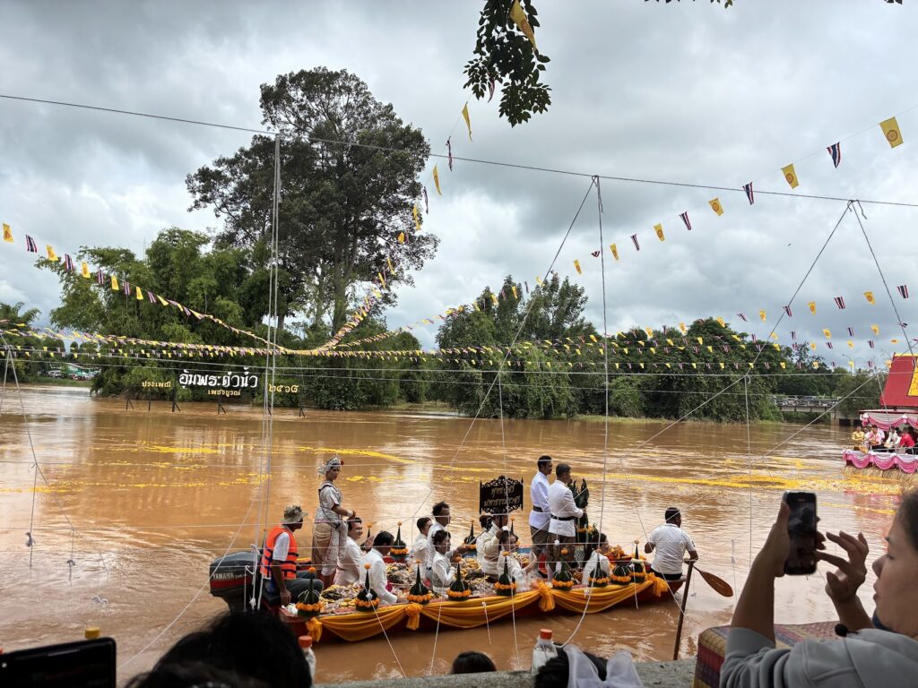הבוקר מתחיל ליד הנהר. לצד מקדש Wat Bot Chanaman. הבמות עמוסות בקהל, כבר שעה קודם לפחות. כולם אוחזים בחוטים לבנים שנשזרו לרשת, לצד הנהר. כולנו עוצרים נשימה לקראת הגעת הסירות טקסיות.