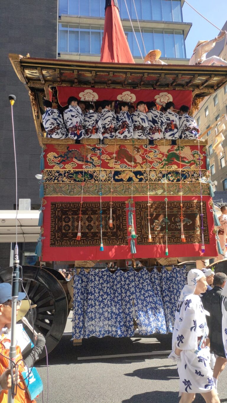פסטיבל גיון אשר מקורו, כך נכתב, בסיפור התגברות על מגיפה איומה שפרצה ביפן ע"י שליחת מנחות לאלים ושליחים שנשאו אותן למקדש יאסקה שבקיוטו. הפסטיבל נחגג השנה אחרי שנות קורונה בהם נאסר על חגיגות והצפי היה לשיא מבחינת חוגגים. אבל שום דבר לא באמת הכין אותנו לכמויות האנשים שנאספו ברחובות. ולמרות הכל, עורקי התחבורה לא נסתמו. התנועה ברחובות המשיכה לזרום. הצלחנו להשתחל לתורים ברכבות ואפילו למצוא מקום על מנת לצפות בתהלוכות. הפסטיבל החל בערב שלפני. ברחובות בהם הוצבו עגלות הפסטיבל והקהל שהתאסף, בא לעבור לידן ולהתבונן בדקורציה ולאכול מאכלי רחוב.